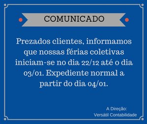 São os votos de toda a equipe Versátil Contabilidade aos seus clientes, amigos e colaboradores.